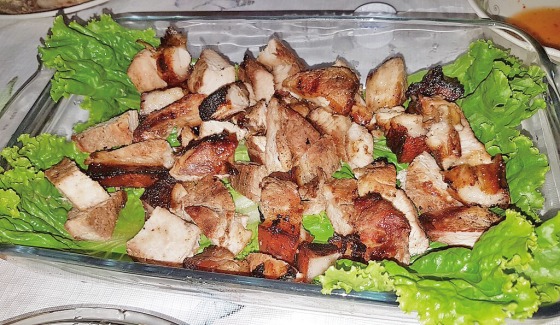 ルソン島のタガログ語圏では炭火で焼いた焼肉をihawと呼び、接辞-inを付けてinihaw(イニハウ)(=炭火で焼いたもの)と呼びますが、同じ物をビサヤ地方ではsugba(スグバ)またはsinugba(シヌグバ)と呼びます。このシヌグバ、特に豚肉を焼いたものを魚のキニラウに入れて一緒にマリネしたものはsinuglaw(シヌグラウ)と呼ばれます。sinugbaのsinugとkinilawのlawを合わせた造語です。シヌグラウがいつから食べられるようになったのか、記録は残っていないようですが、筆者の記憶では1990年代後半ぐらいからレストランなどで一般的に提供されるようになってきたように思います。